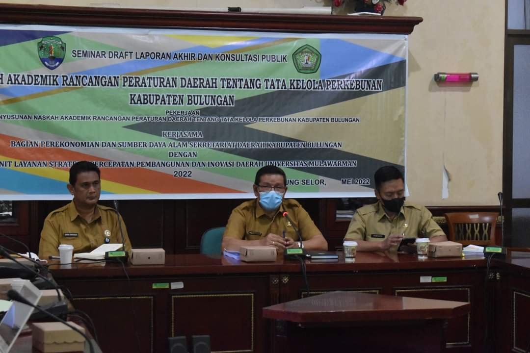 “Kami telah melaksanakan seminar draft laporan akhir dan konsultasi naskah akademik Ranperda tentang Tata Kelola Perkebunan Kabupaten Bulungan,” ucap Wakil Bupati Bulungan Ingkong Ala, Senin 30 Mei 2022.