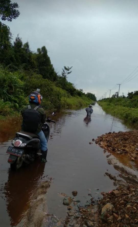 Selain belum diaspal, beberapa titik jalan juga mengalami kerusakan dan banyak berlubang yang membuat akses Jalan Poros ini sangat sulit dilalui kendaraan khususnya saat musim hujan.