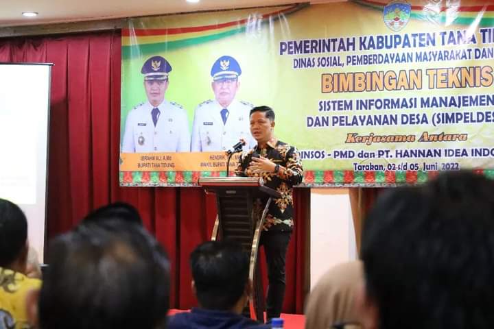 benuanta.co.id, TANA TIDUNG – Bupati Tana Tidung Ibrahim Ali menghadiri sekaligus membuka Bimbingan Teknis (Bimtek) Sistem Informasi Manajemen dan Pelayanan Desa (SIMPELDESA) kerjasama Dinsos-PMD Tana Tidung dan PT. Hanna Idea Indonesia pada Kamis (2/6/2022).