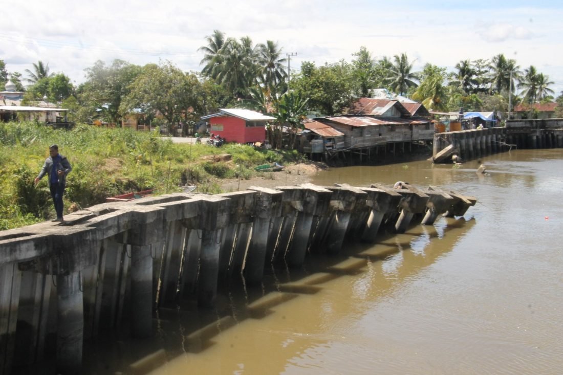 Turap yang digunakan sebagai dinding penahan gelombang air dan abrasi, terlihat masih rebah serta sebagian masuk ke dalam air. Pemerintah Kabupaten Bulungan selama ini belum dapat melakukan penganggaran untuk perbaikan karena anggaran pendapatan dan belanja (APBD) yang minim.