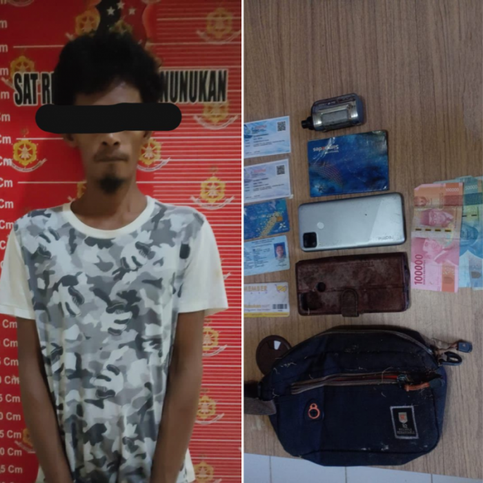 “MK kita amankan dan ditemukan diduga barang bukti berupa satu unit handphone milik korban dan uang tunai Rp. 202.000,” bebernya.
