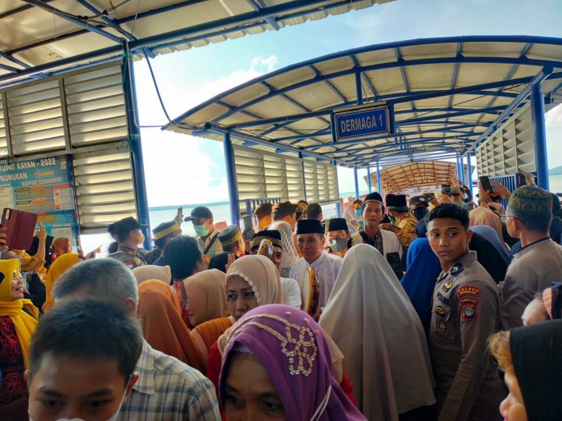 Kedatangan rombongan jemaah diiringi oleh selawat dan rebana disambut haru oleh keluarga dan sanak saudara jemaah yang sudah lama menunggu kedatangan mereka di pelabuhan.