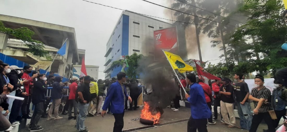 Tampak puluhan mahasiswa yang membawa bendera organisasinya masing-masing sambil menyerukan semua pendapatnya dengan pengeras suara di pintu masuk kantor Gubernur Kaltara. Aksi itu juga di warnai dengan membakar ban di pintu masuk kantor Gubernur yang dijaga ketat personel kepolisian dan Satpol PP.(*)