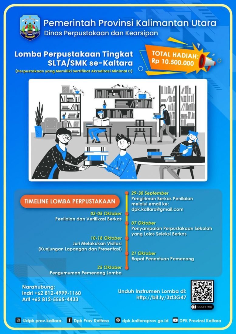 TANJUNG SELOR – Menyemarakan Hari Jadi Kaltara ke-10, Dinas Perpustakaan dan Kearsipan (DPK) Kaltara akan menyelenggarakan salah satu kegiatan berupa lomba perpustakaan tingkat SMA/SMK. Total hadiah disediakan bagi pemenang sebesar Rp 10,5 juta.