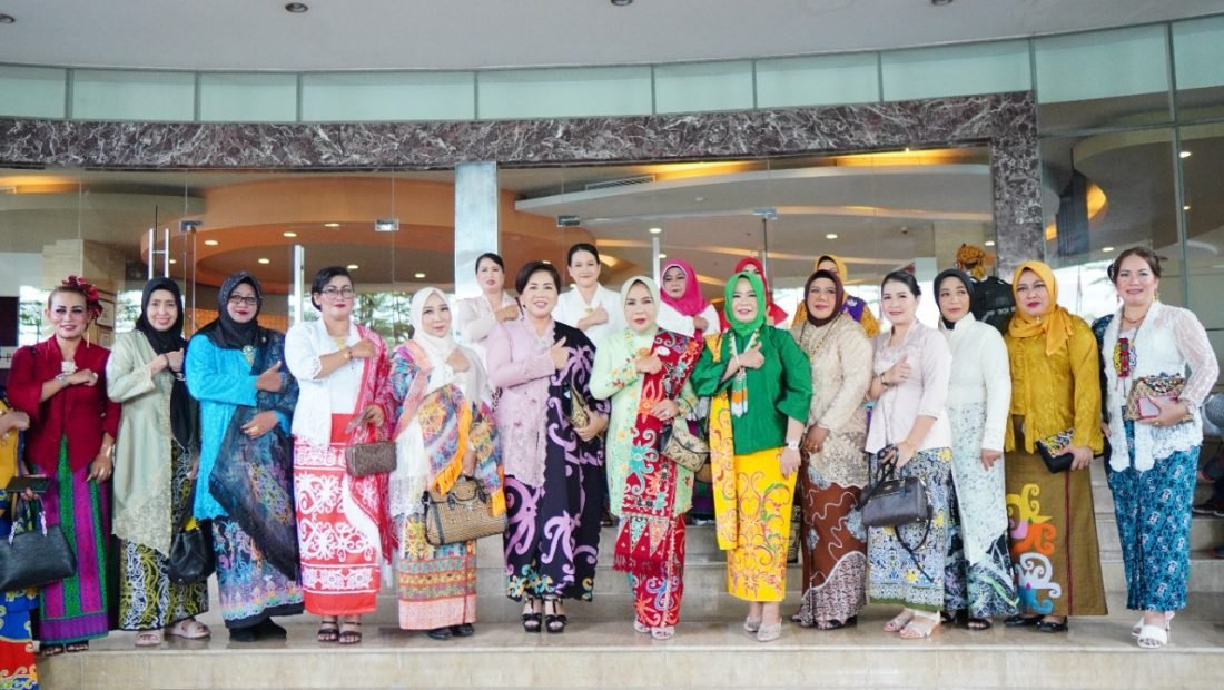 SOLO – Ketua dan Wakil Ketua Tim Penggerak Pemberdayaan Kesejahteraan Keluarga (TP-PKK) Kalimantan Utara (Kaltara), Hj. Rachmawati Zainal, S.H., dan Ping Yansen mengikuti parade kebaya yang digagas langsung oleh Ibu Negara, Hj. Iriana Jokowi.