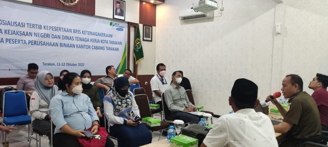 Tarakan – Badan Penyelenggara Jaminan Sosial Ketenagakerjaan Kantor Cabang Tarakan melakukan sosialisasi tertib kepesertaan BPJS Ketenagakerjaan terhadap perusahaan binaan BPJAMSOSTEK Tarakan bersama dengan Kejaksaan Negeri Tarakan dan Dinas Tenaga Kerja Kota Tarakan, Rabu (12/10).