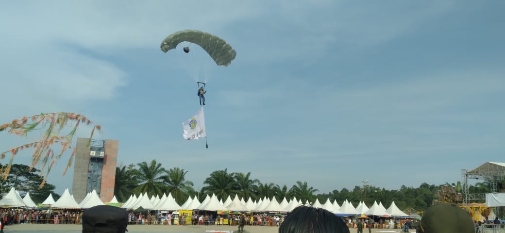 benuanta.co.id, BULUNGAN – Menggunakan pesawat Cassa 212 Aviocar, 9 orang penerjun Wing Komando II Kopasgat Detasemen Matra 2 turun dengan sukses di lapangan Agathis. Pertunjukan tersebut dalam rangka memeriahkan Hari Ulang Tahun (HUT) ke-10 Provinsi Kalimantan Utara (Kaltara).