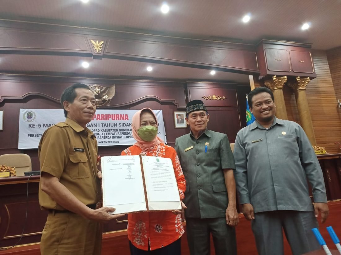 Sekertaris Daerah Kabupaten Nunukan Serfianus, menyampaikan sebanyak 5 rancangan Peraturan Daerah yang telah mendapat persetujuan oleh DPRD Nunukan pada rapat paripurna, sehingga akan akan disampaikan kepada Gubernur Kalimantan Utara, untuk mendapat Nomor Registrasi sebelum disahkan dan diundangkan dalam Lembaran Daerah Kabupaten Nunukan.