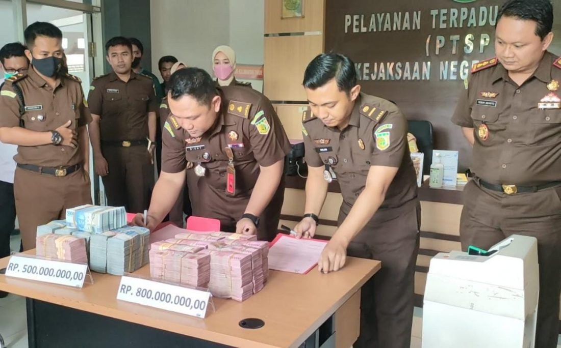 “Hari ini Kejari melalui tim penyidik melaksanakan penyitaan atas keuntungan tersangka YU sebagai Direktur CV dan YGB selaku supplier dan pemodal, kita lakukan penyitaan berupa uang tunai senilai Rp 800 juta,” ujar Teguh Ananto kepada awak media, Senin (14/11/2022).