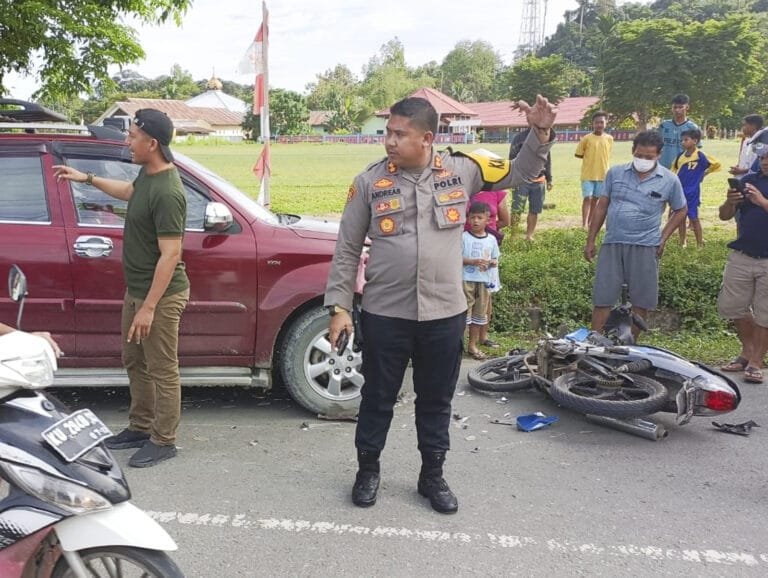 Ia menjelaskan kecelakaan yang baru saja terjadi di Jalan Desa Tanjung Lapang, merupakan kecelakaan yang melibatkan mobil dan sepeda motor. Di mana dari arah yang berlawanan kedua kendaraan itu saling bertabrakan.