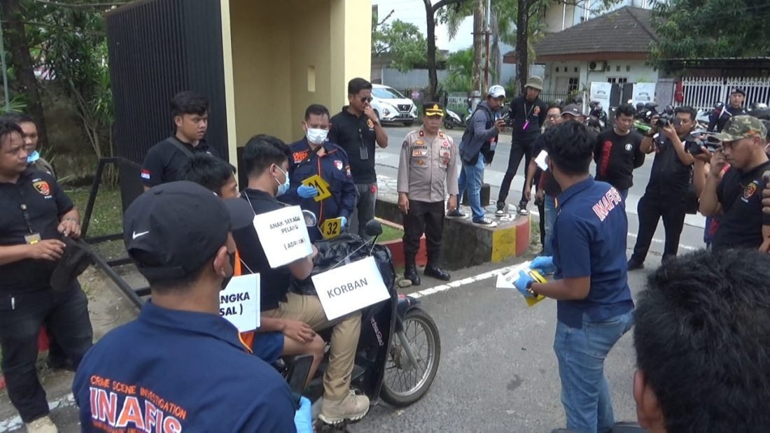 Diketahui, saat konstruksi yang dihadirkan hanya pelaku F, lantaran pelaku A masih di bawah umur sehingga untuk adegannya dilakukan oleh pemeran pengganti.