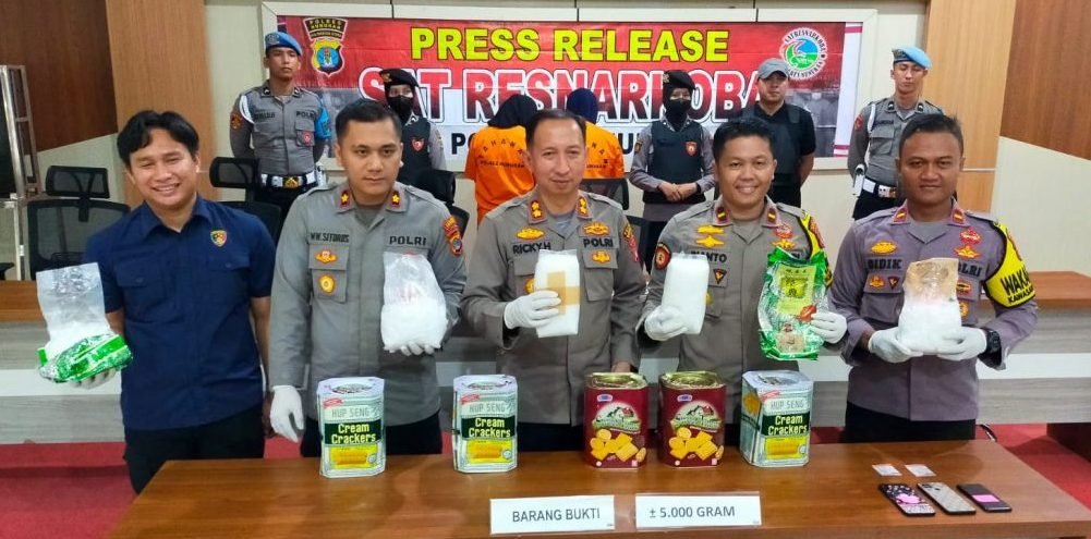 Dibeberkannya, 5 paket sabu tersebut disimpan dengan cara menggunakan kaleng Biskuit, lalu dimasukkan ke dalam 2 buah kotak warna coklat dan terbungkus karung warna putih seberat 5.000 gram.
