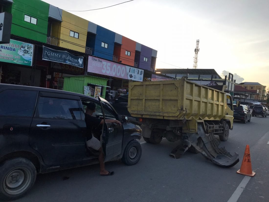 “Tidak dapat mengurangi kecepatan kemudian menabrak mobil dump truck tersebut, pada sisi belakang kanan,” jelas Radyan.
