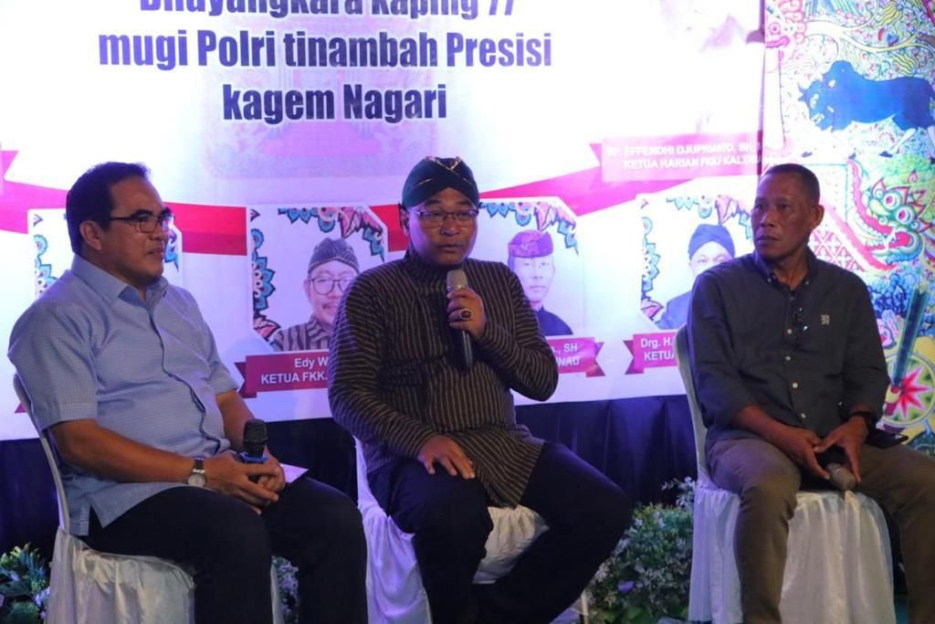 Kegiatan ini dihadiri Ketua Umum FKKJ Kaltara Brigjen Pol Kasmudi, S.IK, Sekda Prov Kaltara, Kapolresta Bulungan, Bupati Bulungan dan tamu undangan warga komunitas Jawa dengan tema “Ngaturaken Ambal Warsa Dhumateng Bhayangkara ke-77 Mugi Polri tinambah Presisi Kagem Nagari.
