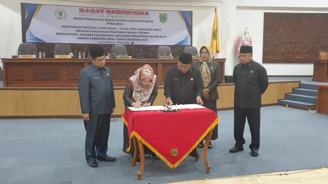 benuanta.co.id, BERAU – Bupati Berau Sri Juniarsih Mas menghadiri rapat paripurna DPRD Kabupaten Berau serta mendengar penyampaian pendapat akhir fraksi-fraksi terhadap rancangan Peraturan Daerah (Perda) tentang pertanggungjawaban pelaksanaan Anggaran Pendapatan dan Belanja (APBD) tahun anggaran 2022.