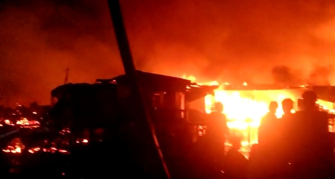 Kejadian ini dikala warga sedang terlelap tidur. Berdasarkan informasi sementara, diperkirakan puluhan rumah yang hangus terbakar.