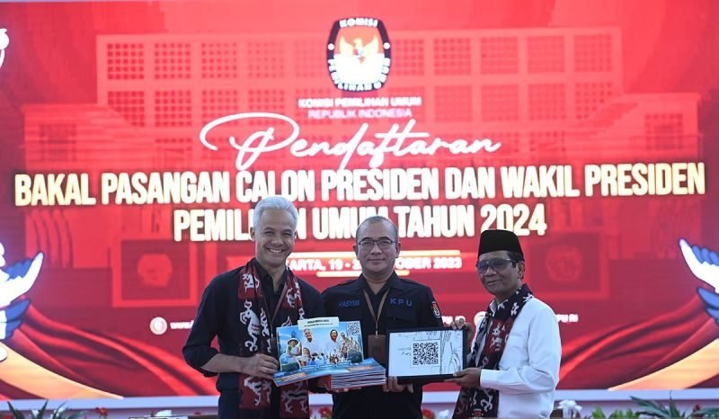 Jakarta – Komisi Pemilihan Umum (KPU) RI menerima secara resmi berkas pendaftaran Ganjar Pranowo-Mahfud MD sebagai calon peserta Pilpres 2024.