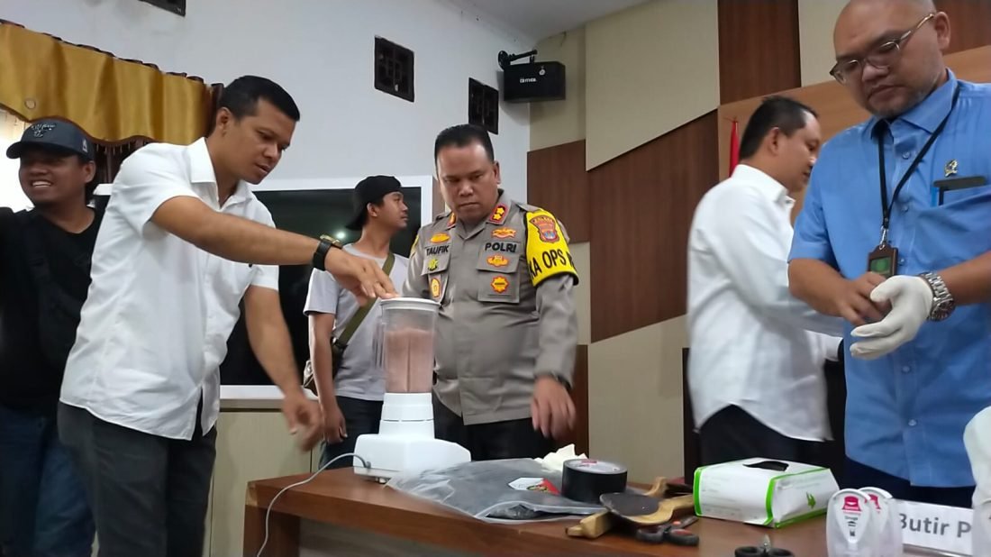 “Untuk barang bukti sabu dan cairan liquid ini kita musnahkan dengan cara dilarutkan ke dalam air, sedangkan untuk pil ekstasi dimusnahkan dengan cara diblender dan dilarutkan ke air kemudian dibuang ke selokan,” jelasnya.