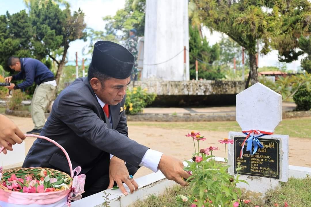 Bustan bersama unsur Forum Komunikasi dan Pimpinan Daerah (Forkompinda) Tarakan melakukan prosesi tabur bunga sebagai bentuk penghormatan kepada para pahlawan yang telah berjasa bagi bangsa dan negara. (adv)