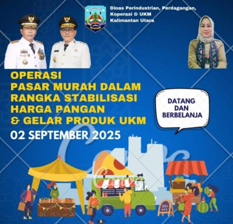 benuanta.co.id, TANJUNG SELOR – Dinas Perindustrian, Perdagangan dan Koperasi (Disperindagkop) Provinsi Kalimantan Utara (Kaltara) menggelar pasar murah dengan melibatkan pelaku Usaha Mikro Kecil Menengah (UMKM) lokal di Lapangan Agathis, Tanjung Selor.