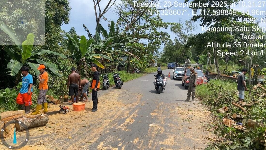 benuanta.co.id, TARAKAN – Sebuah pohon berukuran besar tumbang di Jalan Gunung Selatan, Kelurahan Kampung 1 Skip, Kecamatan Tarakan Tengah, Selasa (23/9/2025) sekitar pukul 09.30 WITA. Kejadian tersebut sempat mengganggu aktivitas warga, namun tidak menimbulkan korban jiwa maupun kerusakan berarti.
