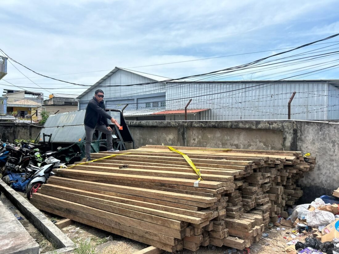 Penangkapan tersebut terjadi pada Minggu (21/9/2025) sekitar pukul 03.00 WITA saat personel Polairud melaksanakan patroli rutin. Saat diperiksa, perahu berwarna hitam bergaris biru itu ternyata memuat ratusan batang kayu olahan yang diduga hasil tebangan ilegal.
