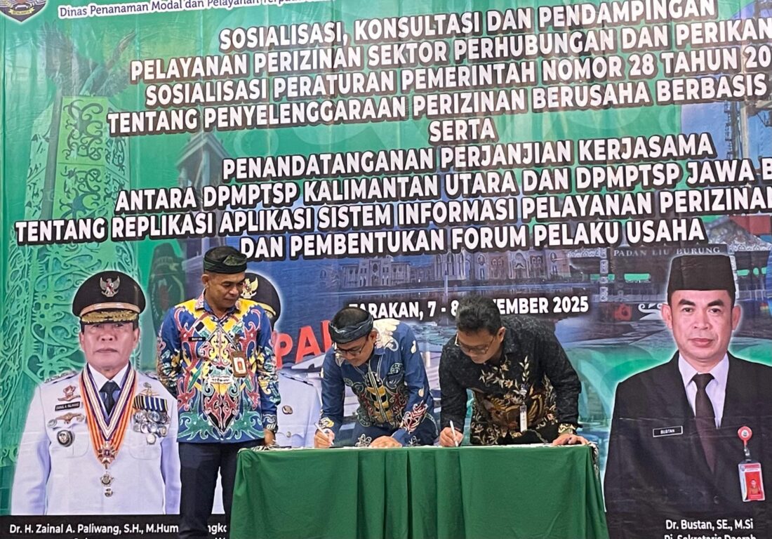 benuanta.co.id, TARAKAN – Dinas Penanaman Modal dan Pelayanan Terpadu Satu Pintu (DPMPTSP) Provinsi Kalimantan Utara (Kaltara) terus mendorong kemudahan berusaha melalui digitalisasi layanan. Upaya tersebut diwujudkan dalam kegiatan sosialisasi, konsultasi, dan pendampingan pelayanan sektor perhubungan dan perikanan, sekaligus sosialisasi Peraturan Pemerintah (PP) Nomor 28 Tahun 2025 tentang Penyelenggaraan Perizinan Usaha Berbasis Risiko pada Jumat hingga Sabtu (7 hingga 8 November 2025).