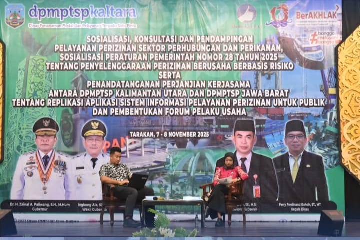 benuanta.co.id, BULUNGAN – Dinas Penanaman Modal dan Pelayanan Terpadu Satu Pintu (DPMPTSP) Kalimantan Utara menggelar sosialisasi Peraturan Pemerintah Nomor 28 Tahun 2025 tentang Penyelenggaraan Perizinan Berusaha Berbasis Risiko. Kegiatan ini dipimpin oleh JF Pengawas Perizinan (PP) dan diikuti perangkat daerah serta pelaku usaha.