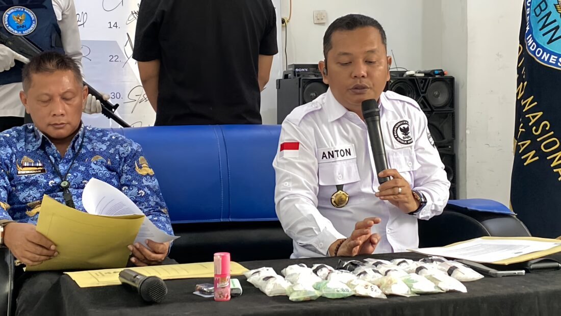 Anton mengatakan setelah dilakukan pemeriksaan BNNK menemukan 1 bungkus plastik bening yang berisikan sabu dari tangan pelaku yang akan melakukan yang akan melakukan transaksi narkotika ditempat tersebut.