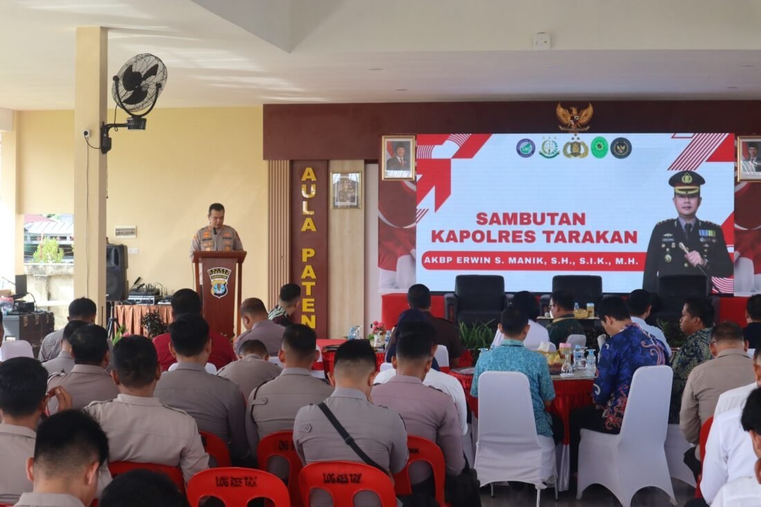 Dalam sambutannya, Kapolres Tarakan AKBP Erwin S. Manik menegaskan pentingnya kegiatan ini sebagai wadah penyamaan persepsi antar aparat penegak hukum. “Sosialisasi KUHP dan KUHAP ini sangat penting untuk menyamakan persepsi antar aparat penegak hukum. Dengan pemahaman yang sama, kita dapat mengimplementasikan aturan secara konsisten, adil, dan transparan. Harapan saya, seluruh personel Polres Tarakan mampu mengaplikasikan materi yang disampaikan sehingga penegakan hukum di Tarakan semakin profesional dan humanis,” ujarnya.