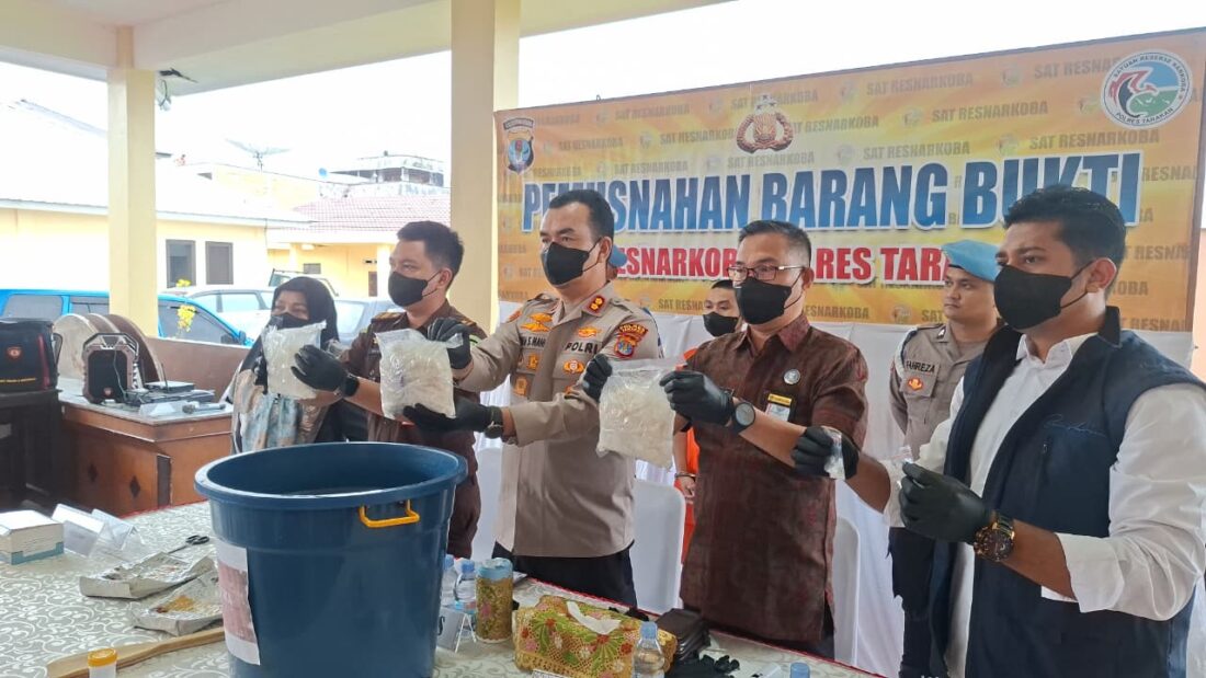 Kapolres Tarakan AKBP Erwin S Manik menyampaikan, dari hasil pengungkapan kasus tersebut, petugas mengamankan barang bukti narkotika dengan berat awal mencapai 3.041,2 gram. Sebelum dimusnahkan, sebagian barang bukti disisihkan untuk kepentingan pemeriksaan laboratorium dan pembuktian di persidangan.