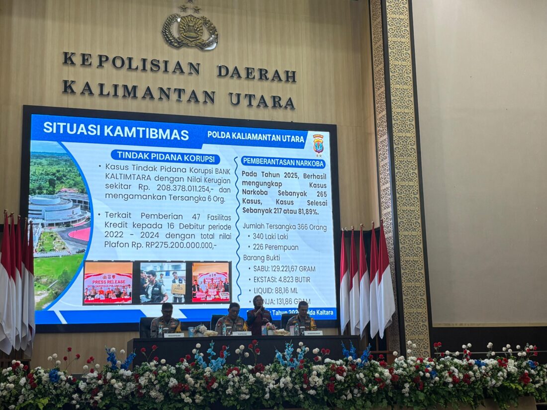 Dalam agenda Press Release Akhir Tahun 2025 yang digelar di Mapolda Kaltara, Kapolda menegaskan pemberantasan narkoba tetap menjadi sasaran strategis utama mengingat posisi geografis Kaltara yang berbatasan langsung dengan Malaysia.