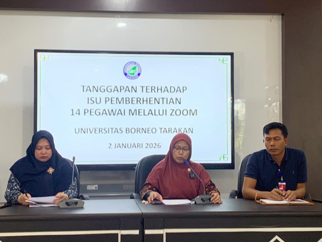 benuanta.co.id, TARAKAN – Kabar pemutusan hubungan kerja (PHK) atau pemberhentian terhadap 14 pegawai melalui Zoom di Universitas Borneo Tarakan (UBT) yang ramai diperbincangkan belakangan ini dipastikan tidak benar. Pihak kampus menegaskan yang terjadi hanyalah berakhirnya masa kontrak kerja sesuai ketentuan perundang-undangan.