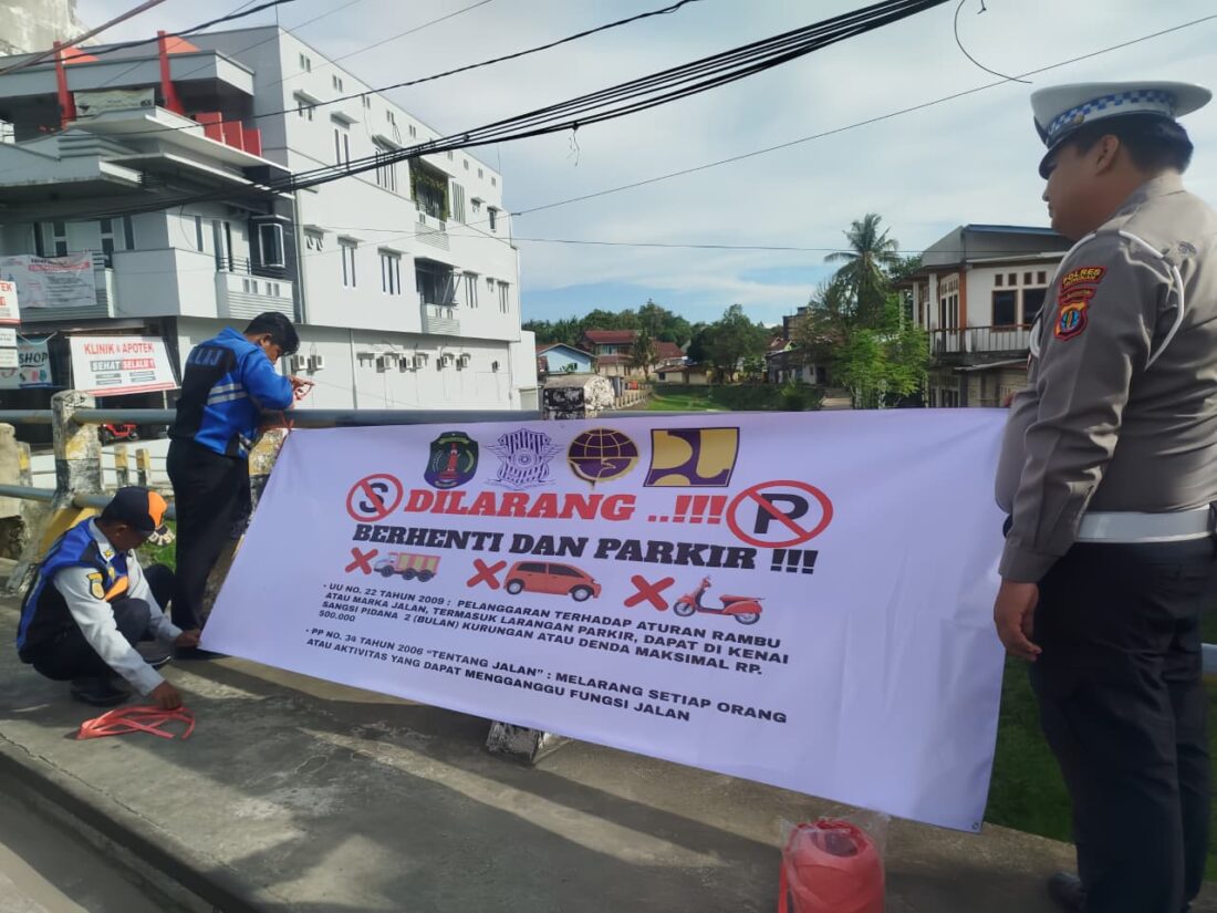 “Spanduk yang dipasang ini memuat dasar hukum terkait larangan parkir di badan jalan dan jembatan sesuai peraturan perundang-undangan yang berlaku,” terangnya.