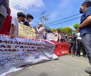 Warga Amal Lama Gelar Aksi Menolak Pembangunan Tembok Wisata Pantai Amal