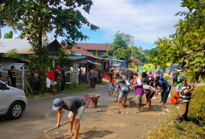 Rusak Parah, Warga Gotong Royong Perbaiki Jalan Persimpangan Aki Pinka