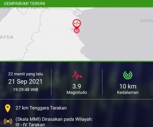benuanta.co.id, TARAKAN – Gempa 3.9 magnitudo yang mengguncang Tarakan sekitar pukul 20.29