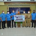 TARAKAN – Penyerahan APD secara simbolis oleh kepala kantor BPJS Ketenagakerjaan Cabang
