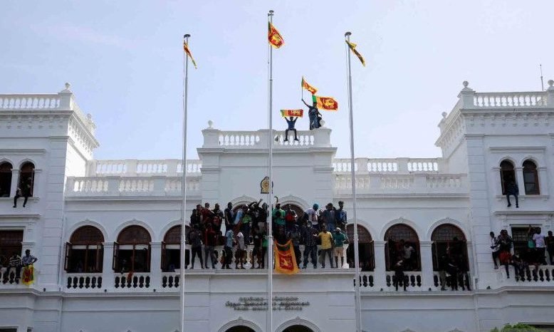 Para pemrotes menyerbu gedung parlemen serta kediaman perdana menteri untuk menuntut Wickremesinghe mundur.