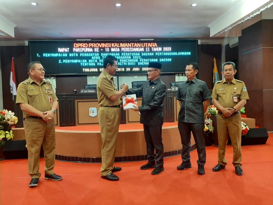 Pada hari ini dilaksanakan penyampaian nota pengantar Ranperda Pajak dan Retribusi Daerah kepada Dewan Perwakilan Rakyat Daerah (DPRD) Provinsi Kaltara yang disampaikan oleh Wakil Gubernur Kaltara Yansen Tipa Padan.