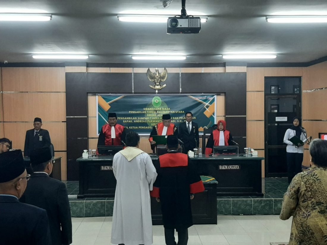 Sidang luar biasa untuk pelantikan dilaksanakan di ruang sidang Cakra Pengadilan Negeri Tanjung Selor, yang dipimpin langsung oleh Ketua PT Kaltara, Lilik Mulyadi. Dalam keterangan Lilik Mulyadi, dijelaskan pimpinan PT Kaltara ada dua, yaitu dirinya dan wakil ketua yang sudah diambil sumpah jabatan dan pelantikan.