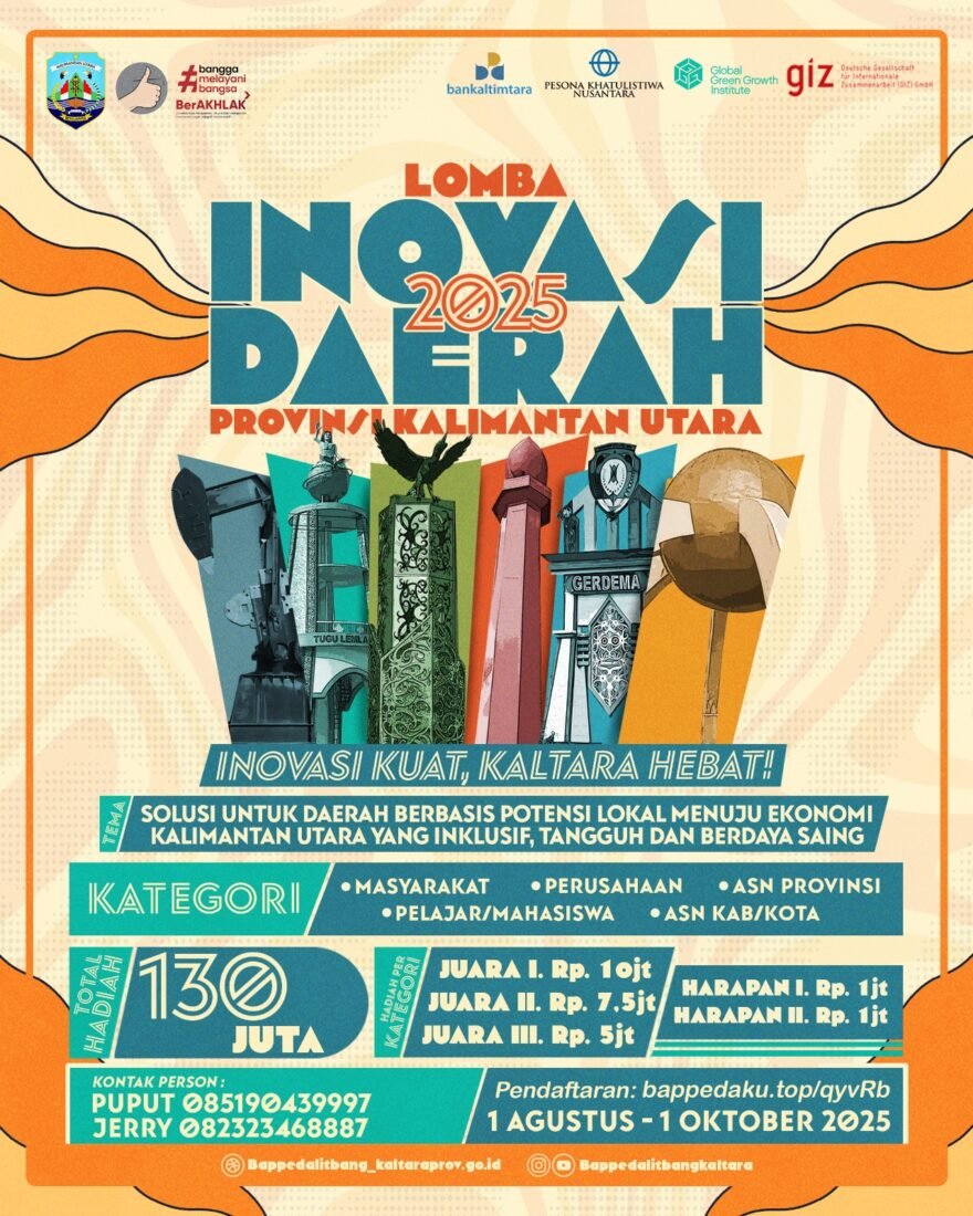 Tanjung Selor – Pemerintah Provinsi Kalimantan Utara melalui Badan Perencanaan Pembangunan, Penelitian dan Pengembangan Daerah (Bappeda Litbang) secara resmi membuka pendaftaran Lomba Inovasi Daerah Provinsi Kalimantan Utara Tahun 2025 atau Kaltara Innovation Awards 2025.