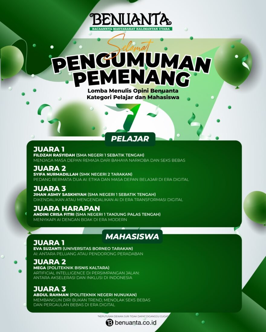 BERTEPATAN hari jadi Benuanta ke-7 tahun, 3 September 2018-2025, panitia lomba menulis opini tingkat pelajar dan mahasiswa mengumumkan daftar peserta terbaik yang menjadi pemenang lomba.