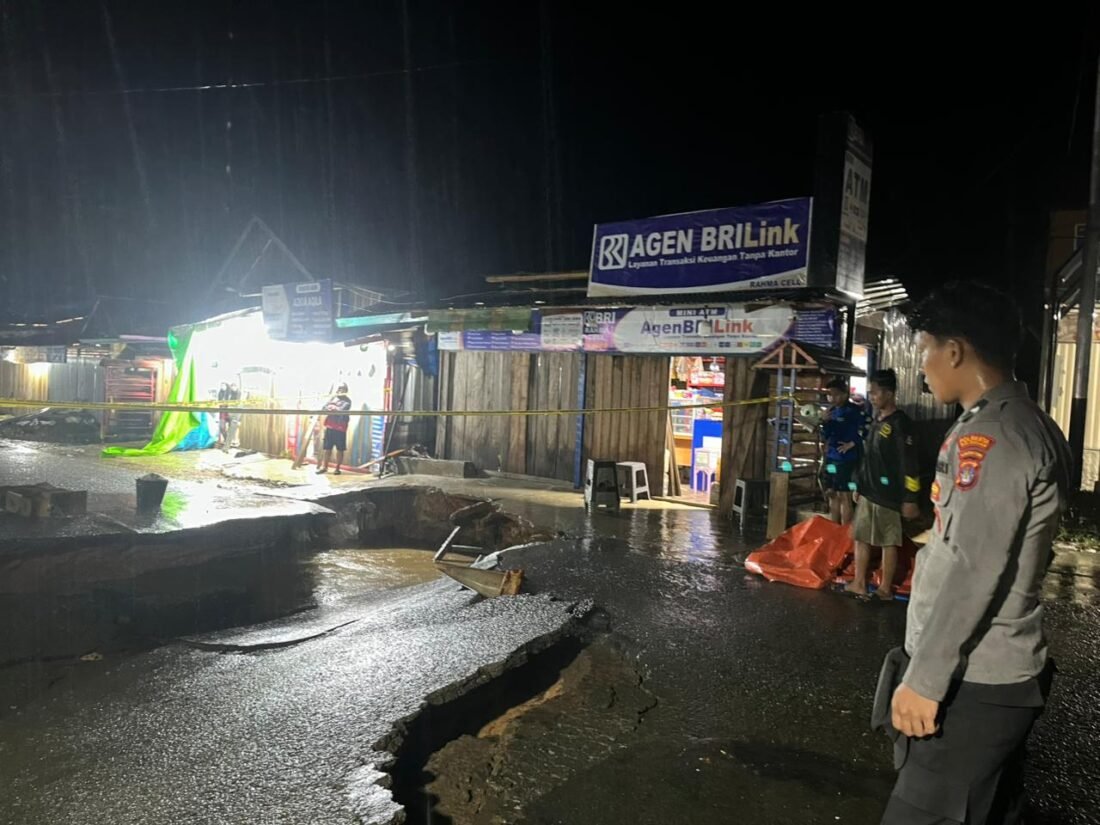 Kerusakan terjadi tepat di depan salah satu minimarket di Desa Kelembunan. Badan jalan beraspal di atas gorong-gorong dilaporkan amblas dengan lebar sekitar satu meter, sehingga kendaraan roda dua maupun roda empat tidak dapat melintas.