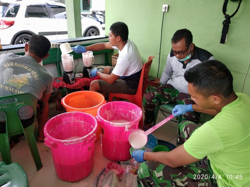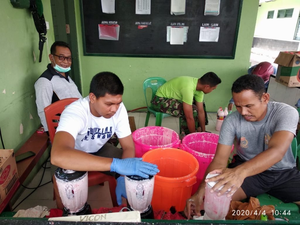 TARAKAN – Untuk memutus mata rantai penyebaran virus Corona (Covid-19) di Tarakan, Kodim 09/07 Tarakan meracik sabun cair cuci tangan antiseptic dan membagi-bagikan kepada masyarakat.