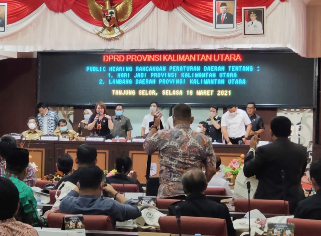 TANJUNG SELOR – Keinginan Gubernur Zainal Arifin Paliwang dan Wakil Gubernur Yansen TP untuk mengubah hari jadi dan lambang daerah Provinsi Kalimantan Utara (Kaltara) mulai menemui titik terang. Sinyal baik ini kelihatan jelas dalam rapat pendapat umum public hearing di Ruang Sidang Gedung Dewan Perwakilan Rakyat Daerah (DPRD) Kaltara, Selasa (16/3/2021).