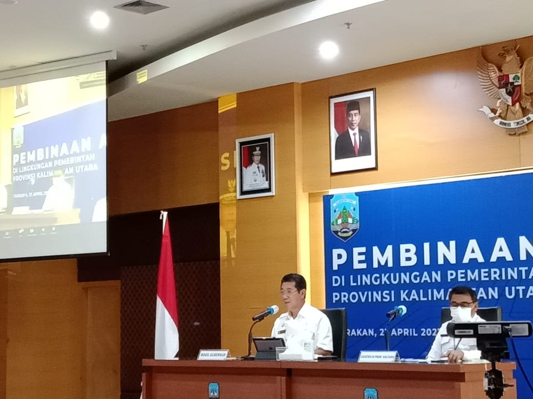 Wagub Dr. Yansen TP, M.Si menyampaikan harapannya dihadapan 111 ASN yang tergabung dari Unit Pelayanan Teknis (UPT) dan Unit Pelayanan Teknis Daerah (UPTD) Wilayah Tarakan di lingkungan Pemprov Kaltara pada Rabu, 21 April 2021.