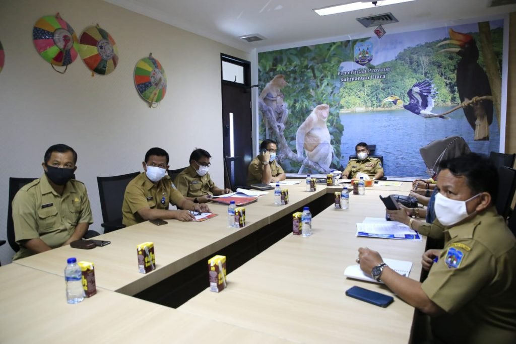 Tampak hadir mendampingi Gubernur Kaltara dalam acara virtual Entry Meeting di Ruang Rapat Gubernur pada Senin, (9/8/2021), antara lain Sekretaris Daerah Provinsi Kaltara, Inspektur Kaltara, Ketua KPU, Ketua Bawaslu, Kepala Disperindagkop, dan Kepala Badan Keuangan dan Aset Daerah (BKAD).