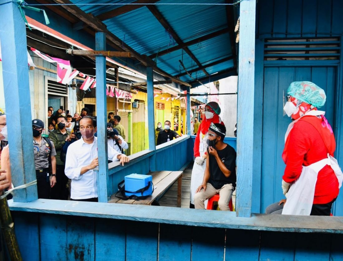 “Jadi petugas vaksin, vaksinator datang dari rumah ke rumah untuk memberikan pelayanan kepada masyarakat untuk memudahkan masyarakat mendapatkan vaksin yang secepat-cepatnya,” ujar Presiden saat meninjau vaksinasi secara pintu ke pintu di Kelurahan Karang Rejo, Kota Tarakan, pada Selasa, 19 Oktober 2021.