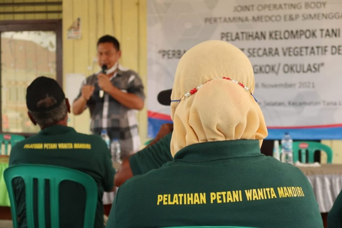 JOB Pertamina-Medco E&P Simenggaris (JOB Simenggaris) mengadakan pelatihan perbanyakan tanaman secara vegetatif melalui metode cangkok dan okulasi selama dua hari di Kecamatan Tana Lia Kabupaten Tana Tidung, pada 5 – 6 November 2021.